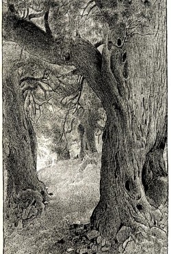Leaving the Honister road at Seatoller, the mountain track over the Sty Pass to Wastdale ascends under the flank of Greyknotts and Brandreth to Seathwaite; and there—to the left of the track, and a short distance from the Seathwaite beck—are the remains of a grove of Yew Trees, as famous as any in the kingdom. It is thus that Wordsworth wrote of them in 1803: “... those fraternal Four of Borrowdale, Joined in one solemn and capacious grove ; Huge trunks ! and each particular trunk a growth Of intertwisted fibres serpentine Up-coiling, and inveterately convolved ...” |